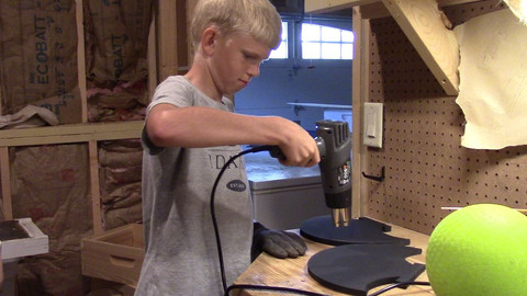 I cut out four pieces on thick 1/2inch EVA foam mats and sanded the textured side so it would take glue. My awesome cousins helped with this part. Thanks Guys!